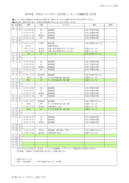 コロナ渦で思うような活動ができず苦しい1年でしたが、 来年はコロナが終息し思いきり活動出来る事を選手、コーチ、保護者共々願っています。
